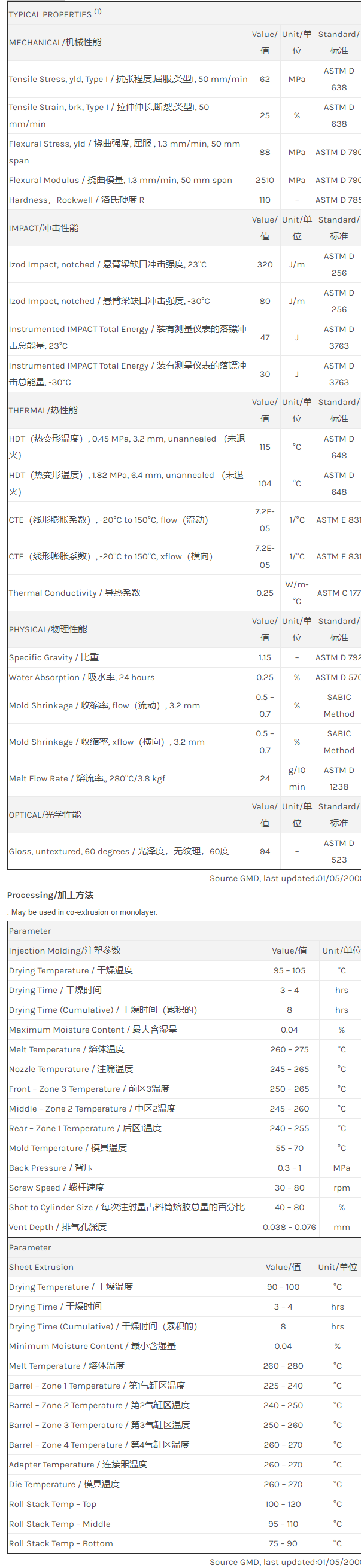 “GELOY XP4034是一种丙烯腈-苯乙烯-丙烯酸酯+PC(ASA+PC)材料,加工方式为:片材挤出成型或注射成型。