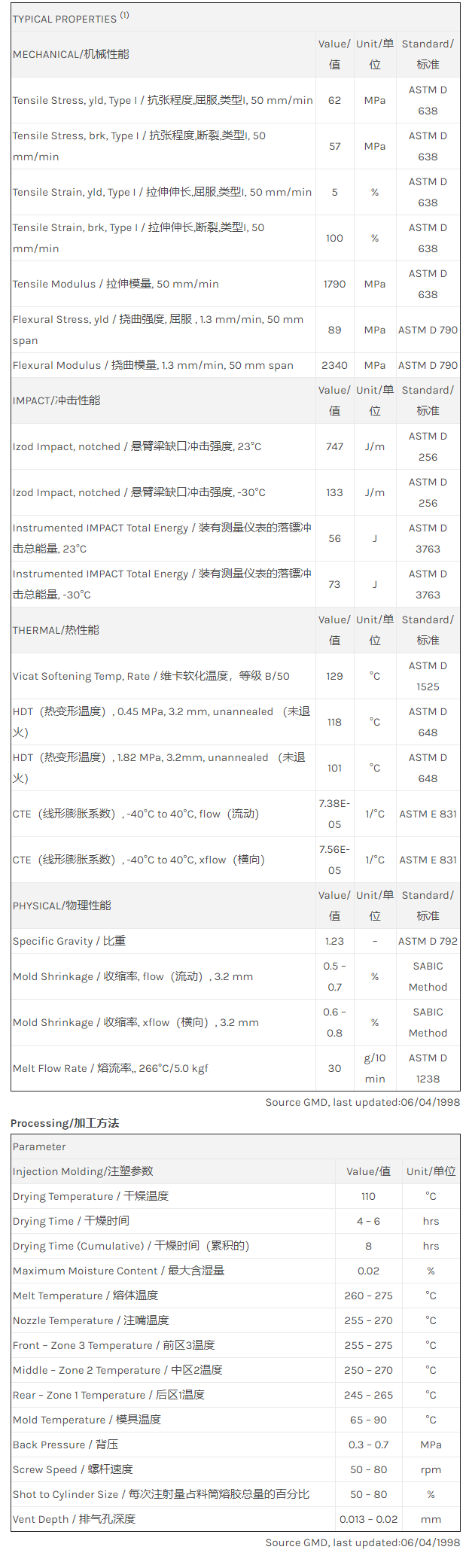Xenoy PC/PBT/PET 1732物性表