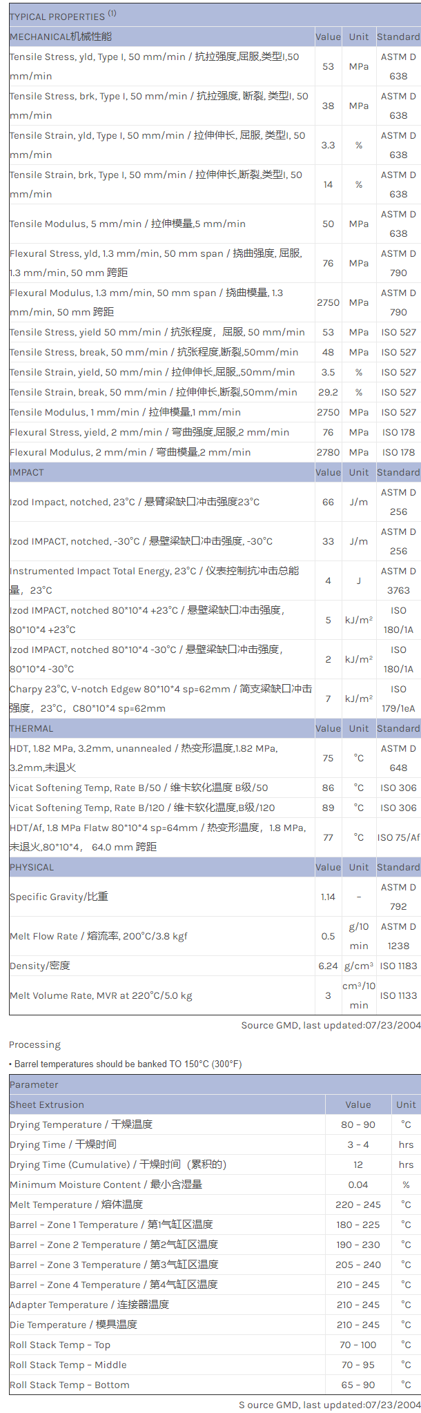 应用范围:产品描述Geloy ASA EXGY0022物性表VFx Extrusion for Tri-layer sheet