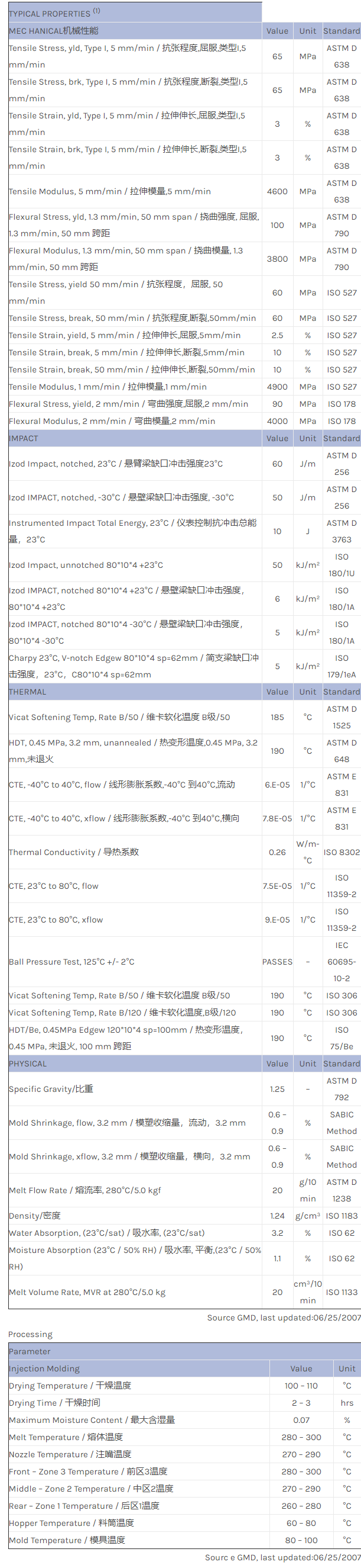 应用范围:产品描述NORYL GTX GTX6203物性表NORYL GTX6203 is a 20% talc filled material with superior dimensional stability, excellent processability and surface appearance.