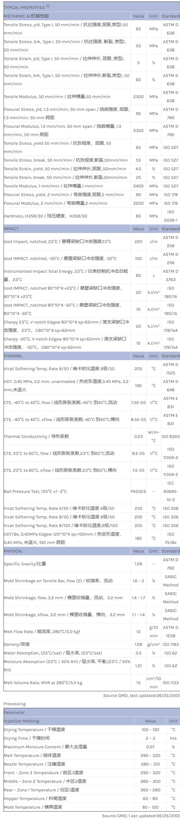应用范围:产品描述NORYL GTX GTX934物性表NORYL GTX934 is an unfilled GTX grade with improved processability and heat ageing performance.