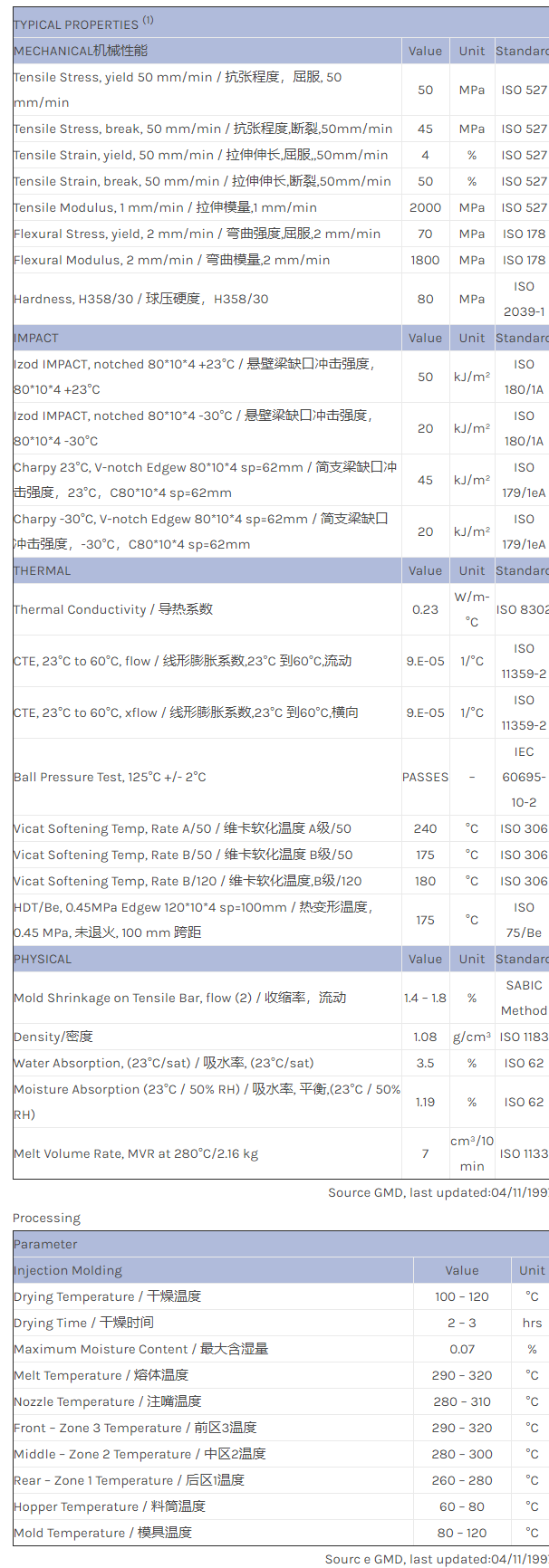 应用范围:产品描述NORYL GTX GTX964物性表NORYL GTX964 is an unfilled impact modified material with optimised processability.