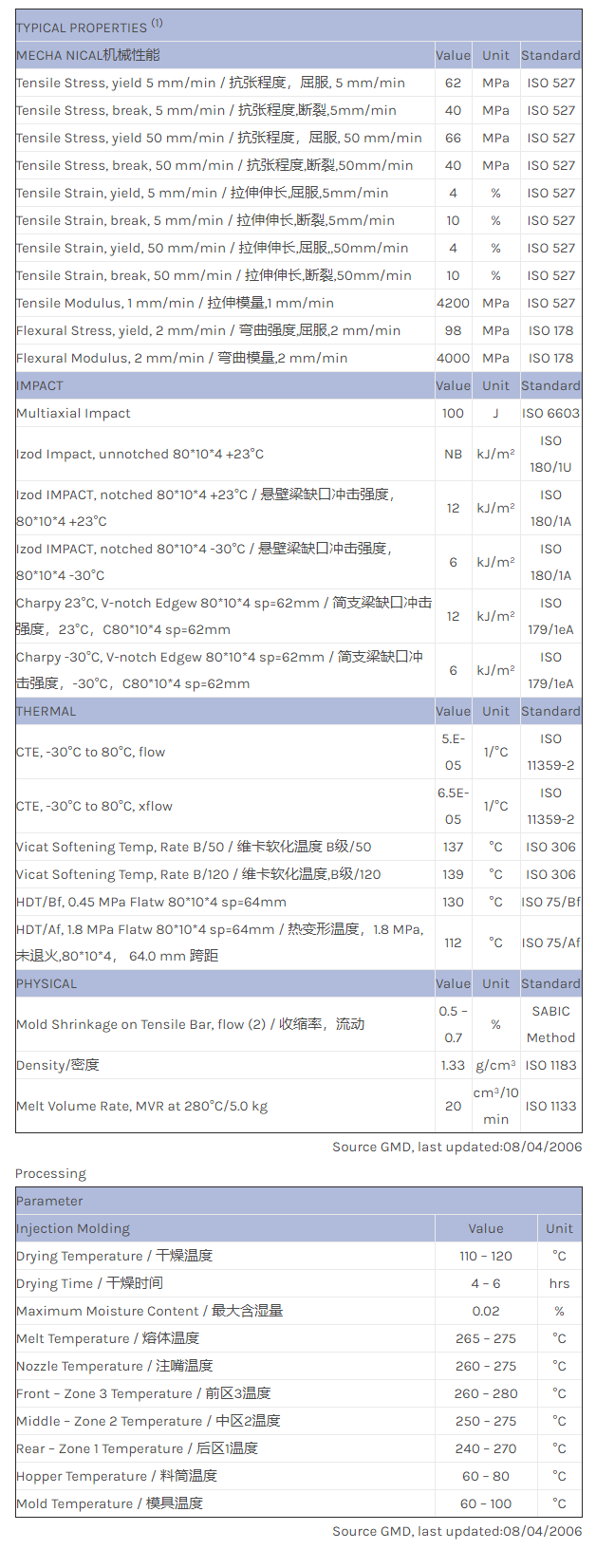 惠州XENOY PC/PBT/PET EXXY0080物性表