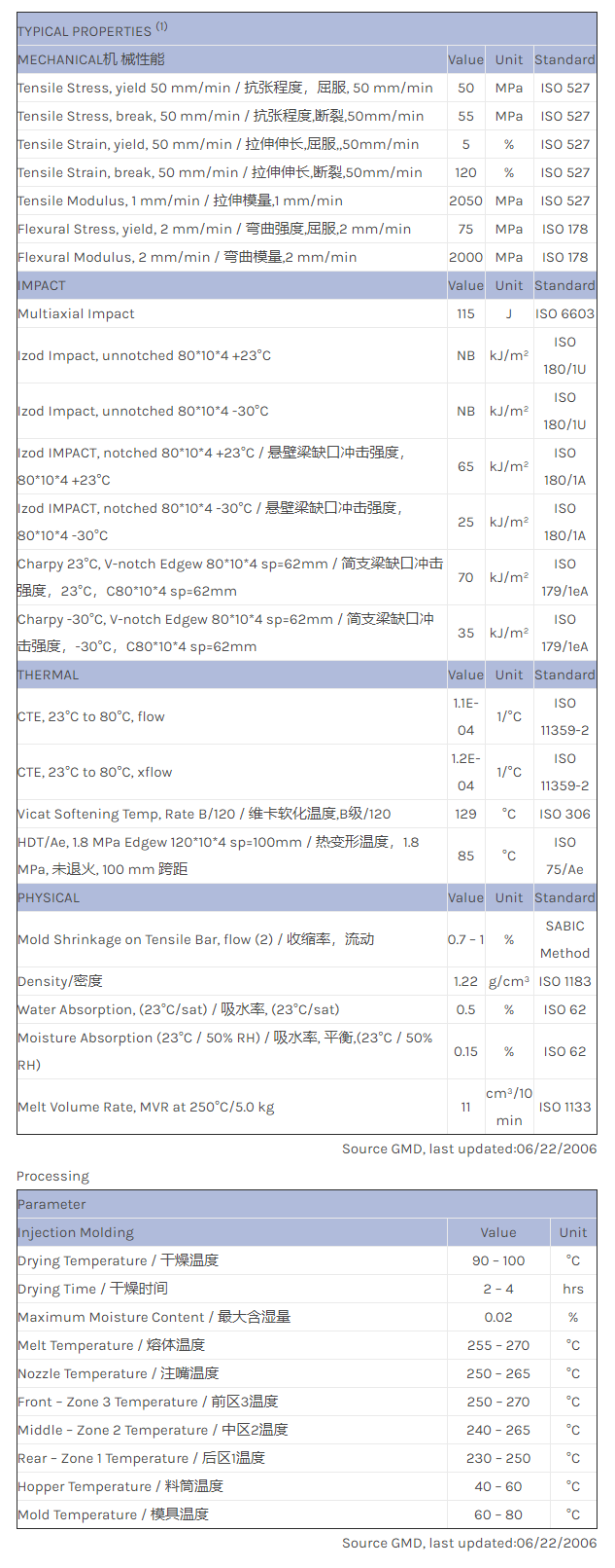 惠州XENOY PC/PBT/PET EXXY0100物性表