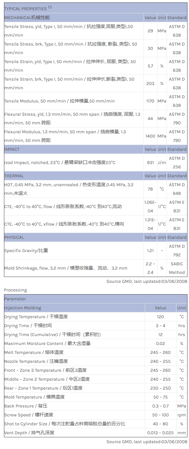应用范围:产品描述XENOY PC/PBT/PET EXXY0160物性表Fuel resistant, high impact strength with excellent fuel barrier properties – suitable for injection molding applications.