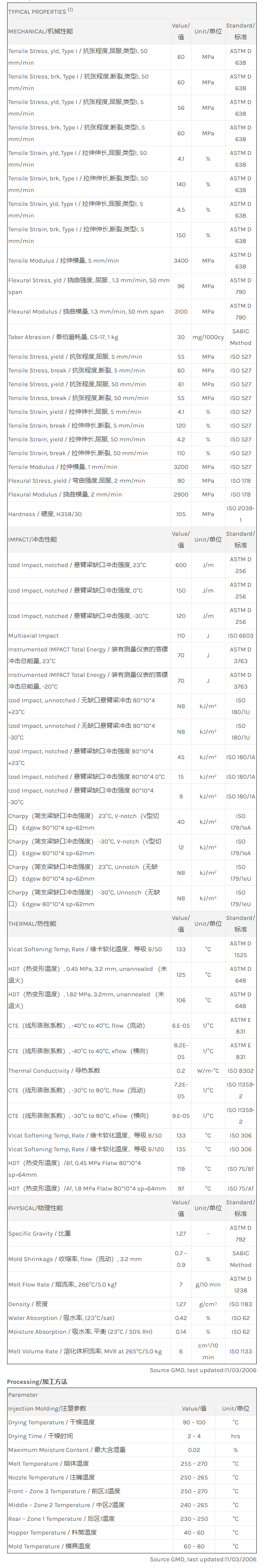 Xenoy PC/PBT/PET X4830物性表