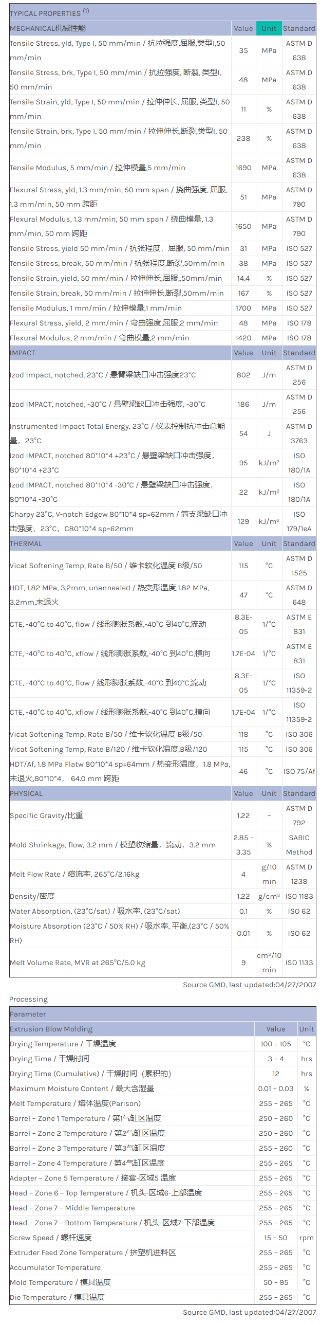 应用范围:产品描述XENOY PC/PBT/PET X6800BM物性表XENOY X6800BM是一种聚丁烯对苯二甲酸酯(PBT)材料,加工方式为:挤出吹塑成型。XENOY X6800BM的主要特性为:冲击改性。