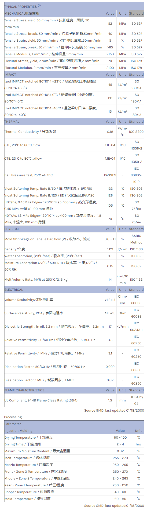 应用范围:产品描述XENOY PC/PBT/PET XD1507S物性表XENOY XD1507S is an impact modified PBT+PC blend with outstanding chemical resistance, good UV stability and flow properties, designed for self coloured, optiwall bumper