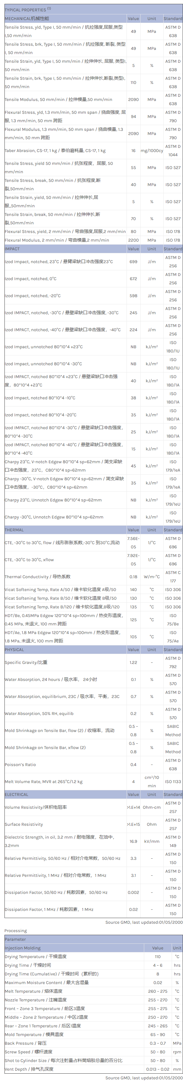 应用范围:产品描述XENOY PC/PBT/PET XL1339物性表XENOY XL1339是一种聚碳酸脂+PET(PC+PET)产品,可以通过注射成型进行加工。