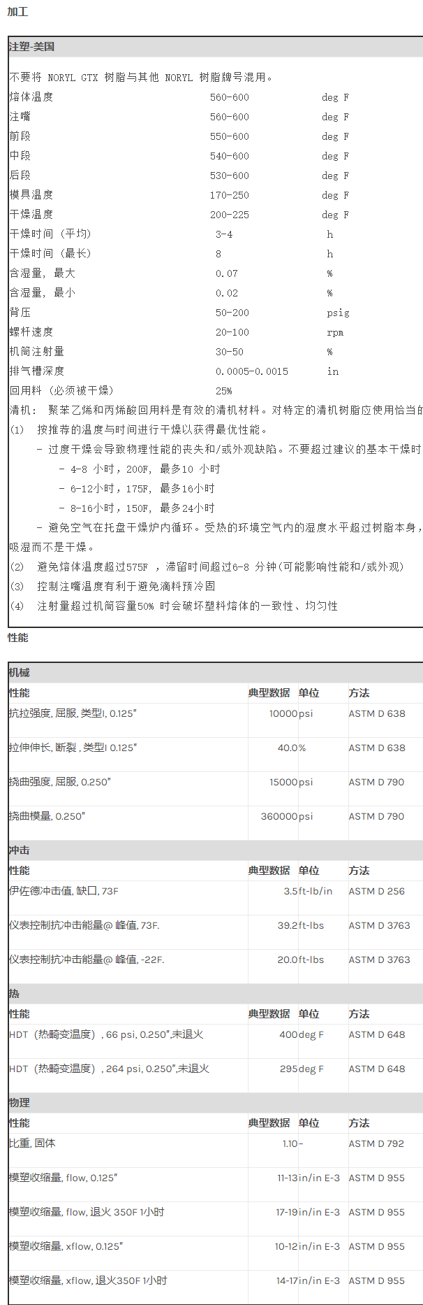 应用范围:产品描述Noryl GTX PPE/PA GTX917物性表