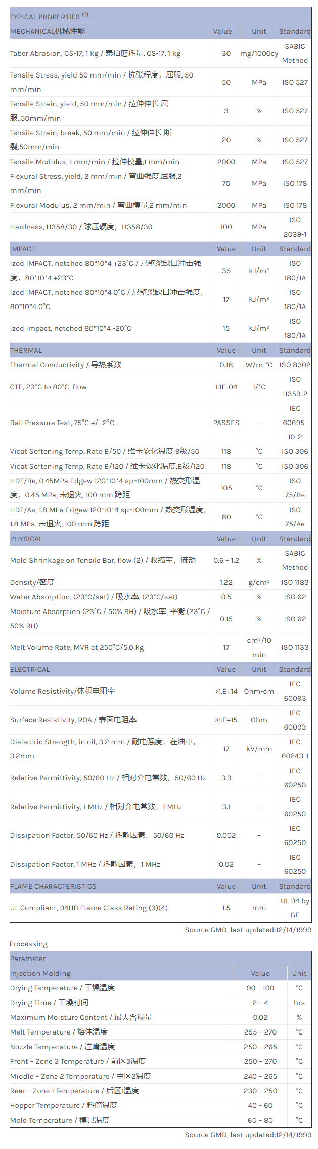 应用范围:产品描述XENOY PC/PBT/PET XR1物性表XENOY XR1 is a recycle PBT+PC blend with ductile impact behaviour above 0 degrees C, used for non-cosmetic applications. Only available in black.