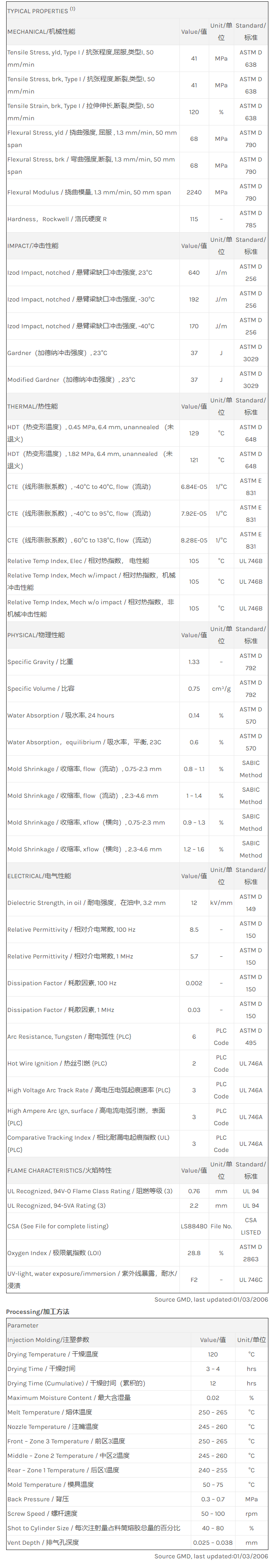 “Valox 365 resin是一种聚对苯二甲酸乙二酯(PET)材料,加工方式为:注射成型。