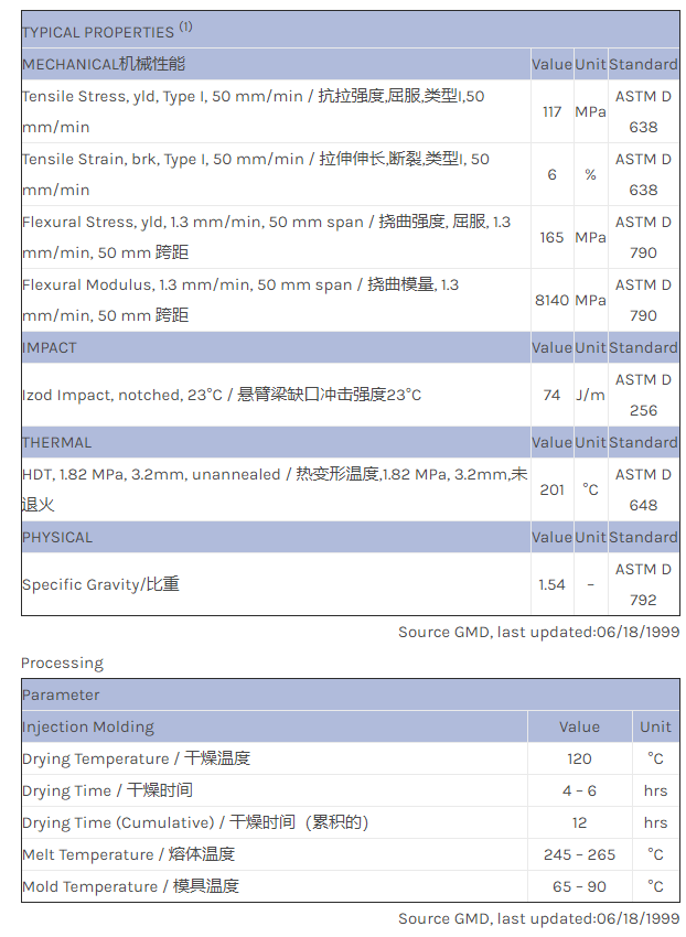 应用范围:产品描述Valox PBT 6826物性表30% glass filled, release containing polyester alloy utility grade.