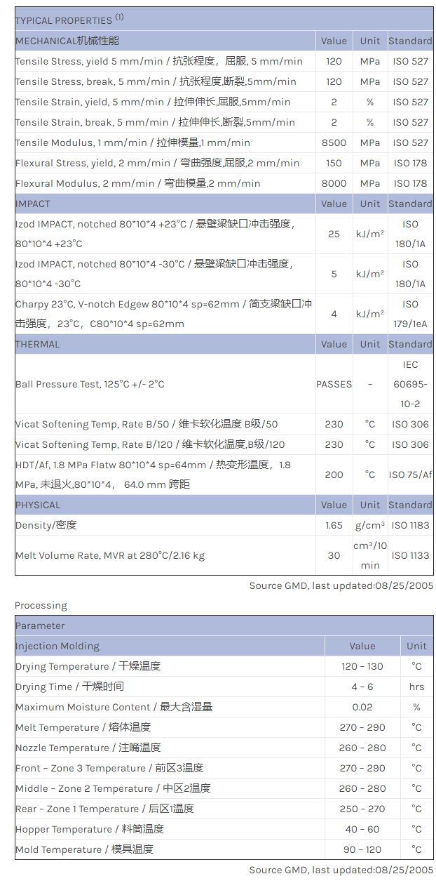 应用范围:产品描述Valox PBT EXVX1193物性表PET, Heat stabilized grade which can be used for FR Lampholder applications