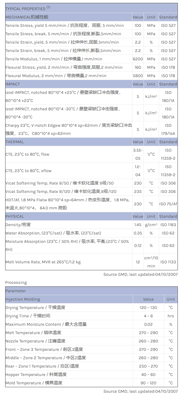 应用范围: 产品描述 Valox PBT V9230CS物性表 15% GF PET Injection Moulding grade, Heat and Color Stabilised, for light colors\