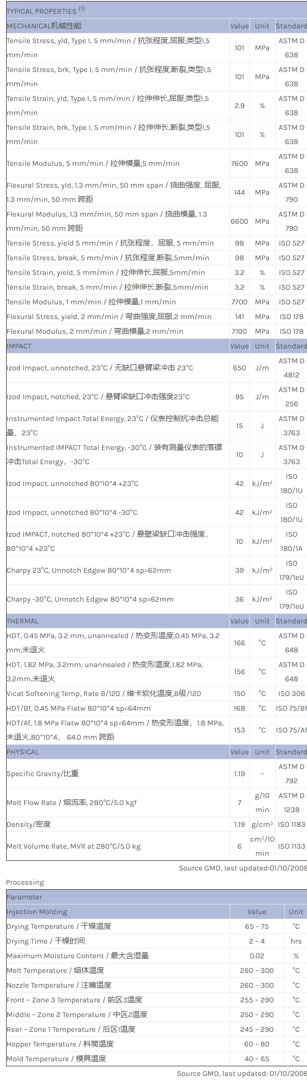 Noryl EXNP0031 is a 30% Glass fiber reinforced alloy of PP and PPO.