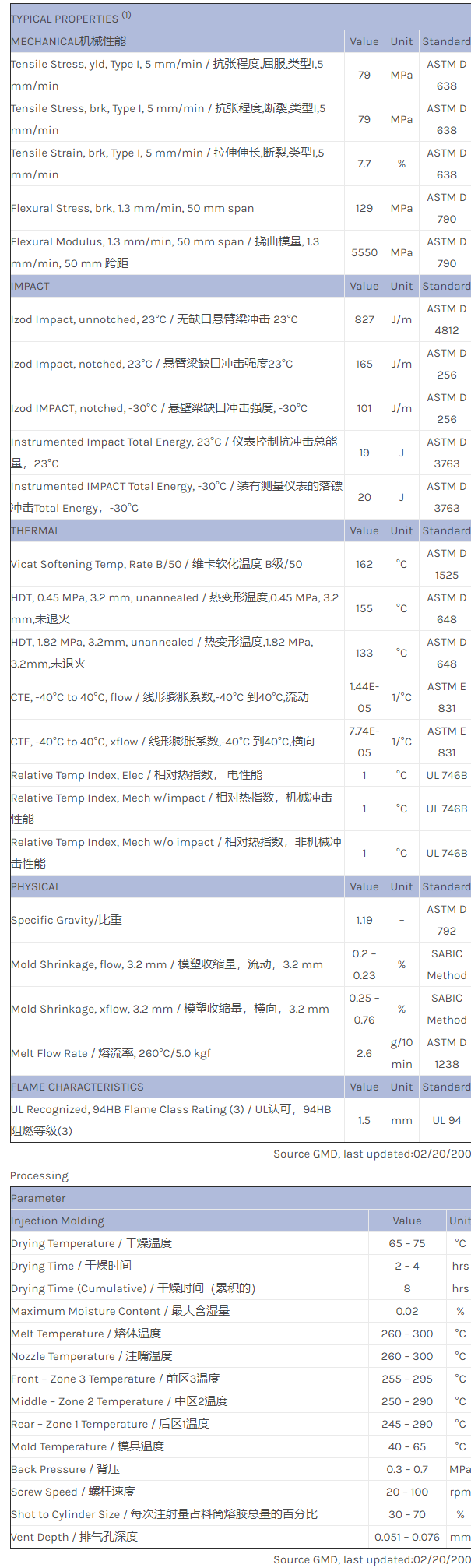 应用范围:产品描述Noryl PPX PPX630物性表30% GR PPE+PP. High elongation. high stiffness. NSF Standard 61 Compliant (color limited).