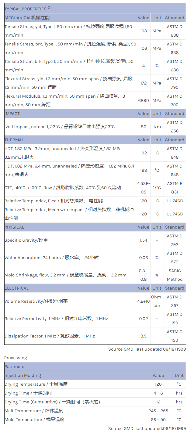 应用范围:产品描述Valox PBT 830R物性表30% glass filled, release grade, polyester alloy.