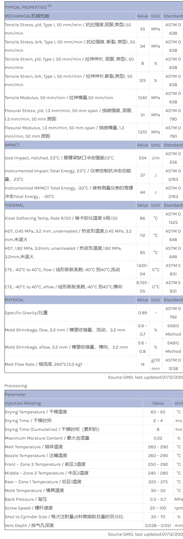 应用范围:产品描述Noryl PPX PPX7115物性表High modulus/impact/heat PPE+PP. NSF Standard 61 Compliant (color limited).