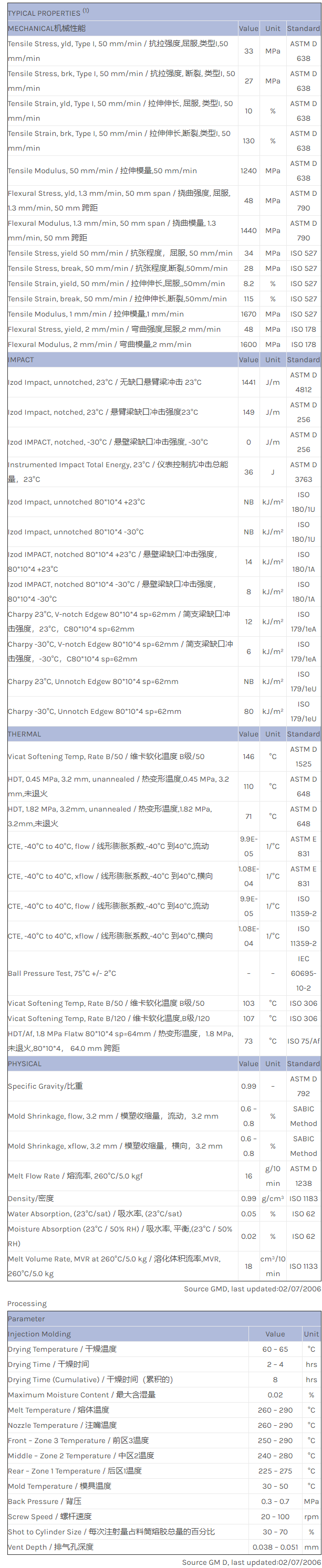 Noryl PPX PPX7200物性表
