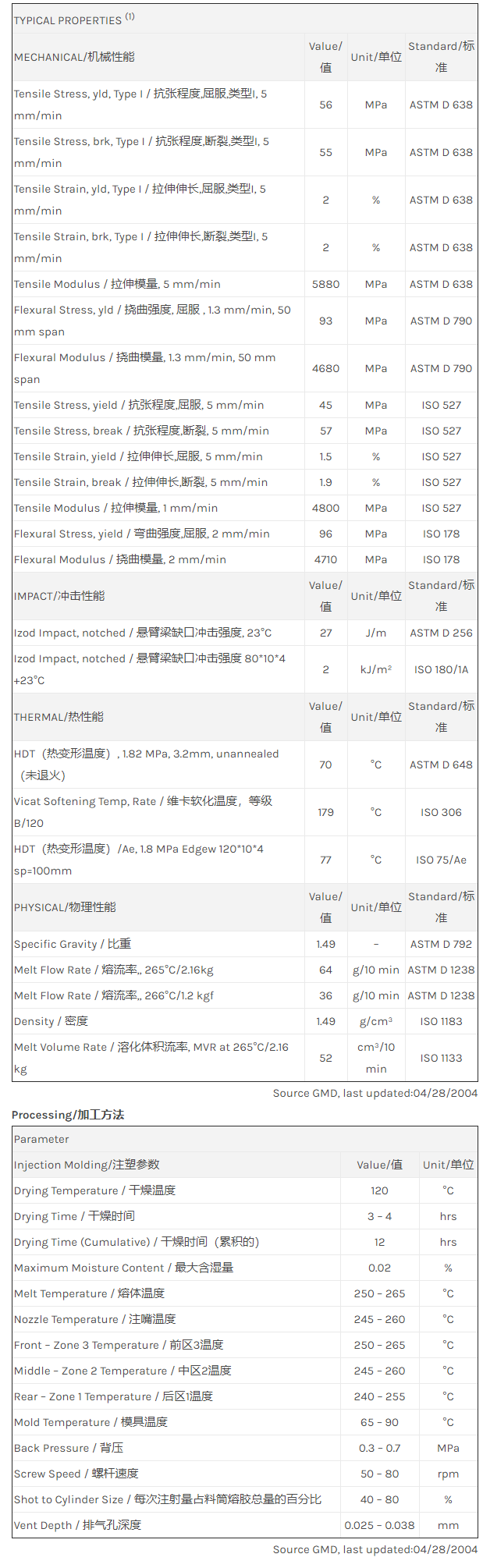 “Valox EH7020HF resin是一种聚对苯二甲酸丁二酯+PET(PBT+PET)材料,含有的填充物为矿物填料,加工方式为:注射成型。