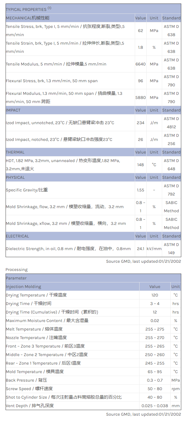 应用范围:产品描述Valox PBT EXVX0020物性表Will be commercialized as V7070. PRELIMINARY DATA. 11% glass, 25% mineral reinforced PBT+PET. High flow, chroma, dielectric strength; dimensionally stable: for electrical uses