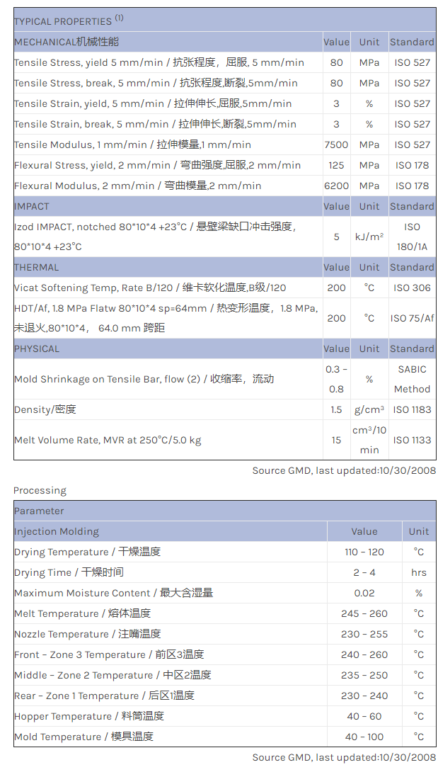 应用范围:产品描述Valox PBT EXVX1364物性表16% GF PBT, Non-Brominated & Non-Chlorinated Flame retardant