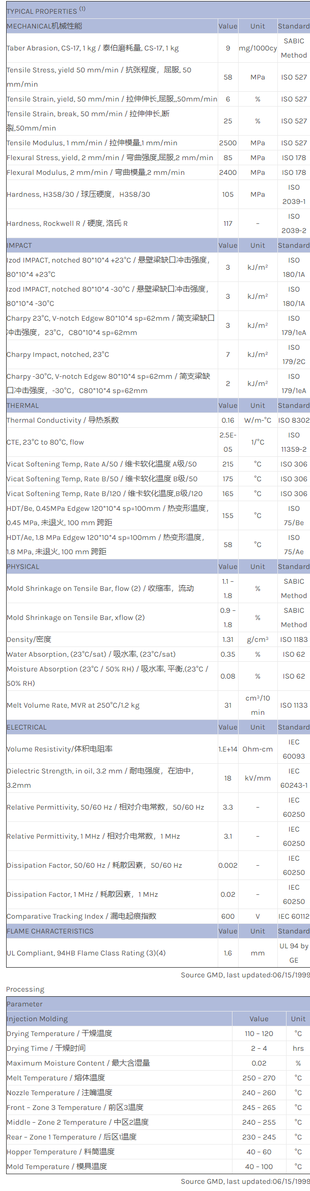 应用范围:产品描述Valox PBT 212HPR物性表VALOX 212HPR is compliant with food contact regulations acc. to 90/128/EEC. VALOX 212HPR is an unreinforced PBT injection moulding resin which contains internal mould release. A