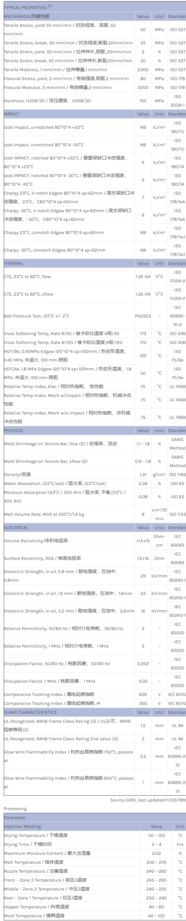 应用范围:产品描述Valox PBT 3007物性表VALOX 3007 is an unreinforced, impact modified, non flame retardant PBT injection moulding resin. Applications: flexible hinge connectors.
