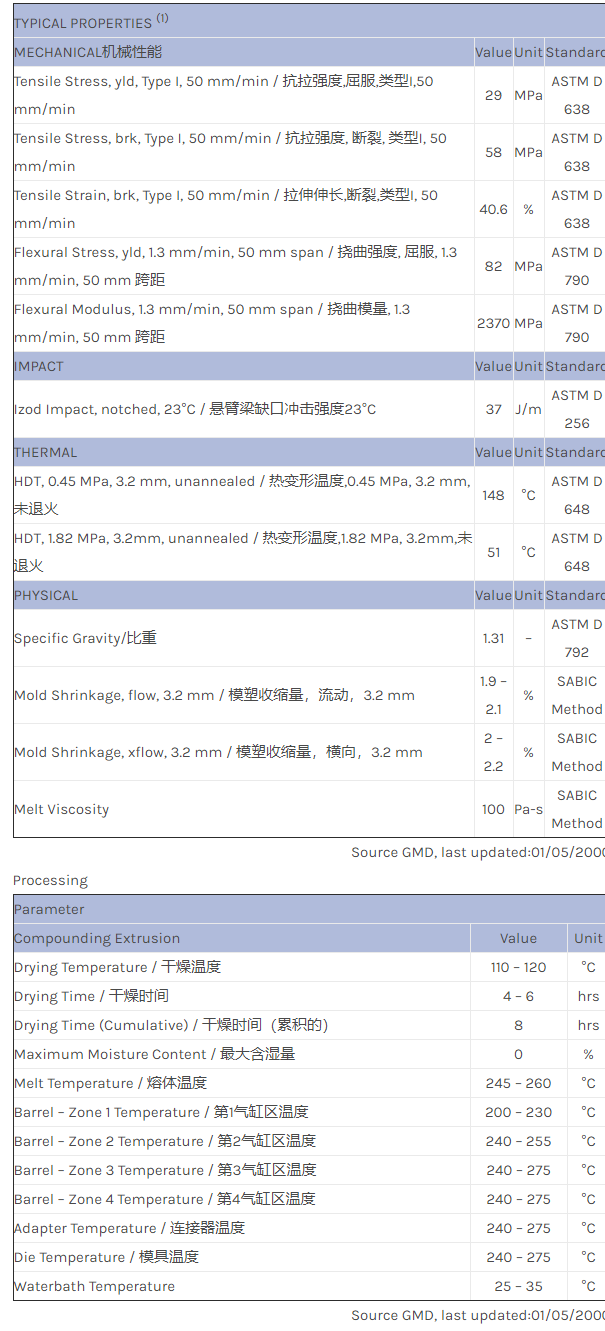 应用范围:产品描述Valox PBT 305物性表PBT, For compounding only. Not intended for Injection Molding. Melt viscosity: 250C at 21.6 kgf is 1450-1850.