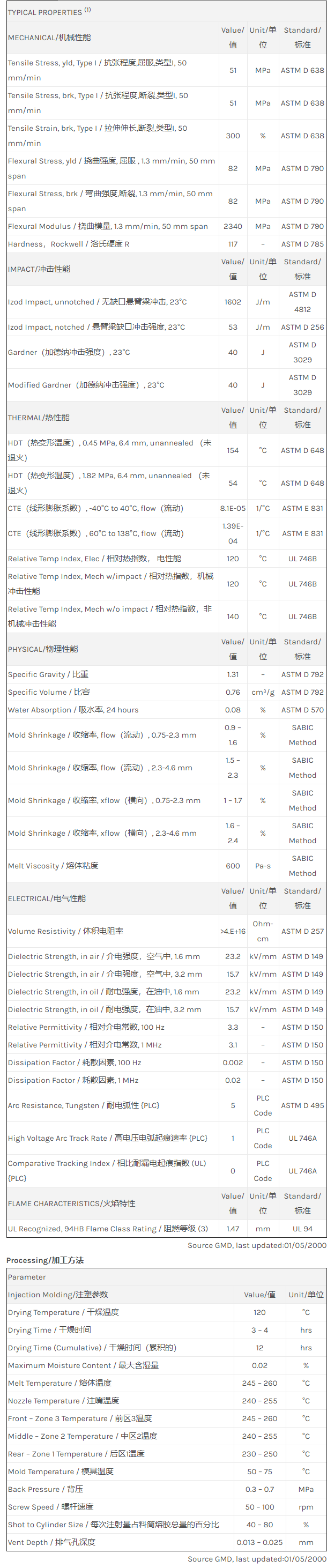 Valox PBT 310物性表