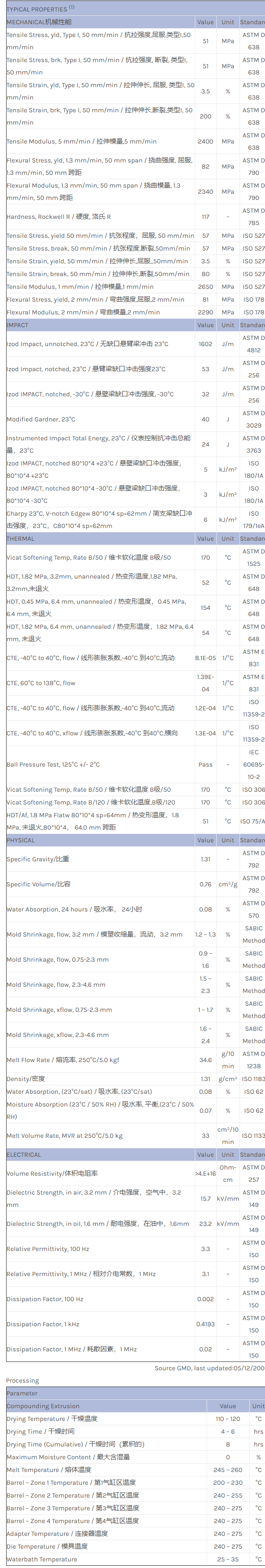 应用范围:产品描述Valox PBT 310HP物性表Unreinforced, neat resin for compounding only. Not intended for injection molding. Medium viscosity 5000-7000 P. Available in natural (1001) color. FDA Food Contact Compliant