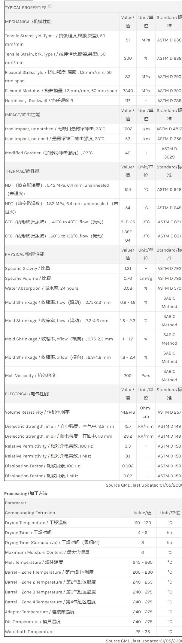Unreinforced, For extrusion/compounding only (not for injection molding). High viscosity. FDA and USP Class VI compliant. Melt Viscosity / 熔体粘度 between 7500 and 9500 poise.
