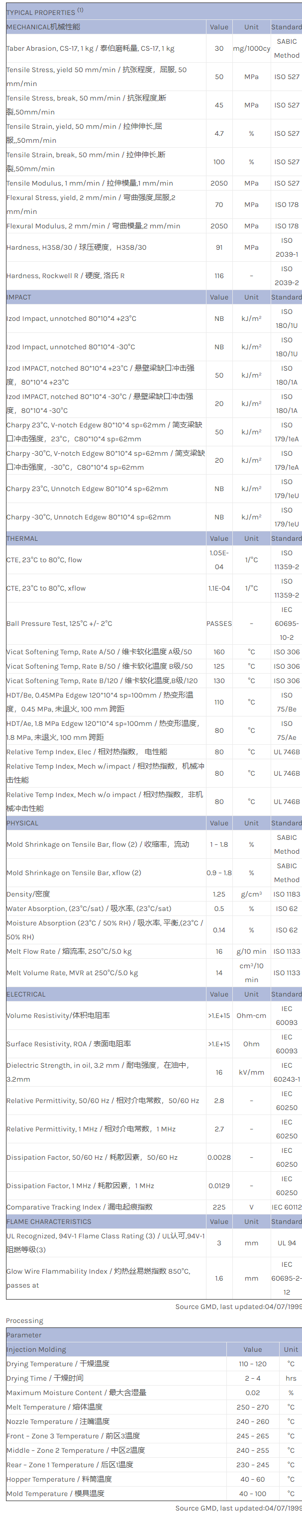 应用范围:产品描述Valox PBT 3607U物性表冲击改良、紫外稳定、阻燃聚酯。