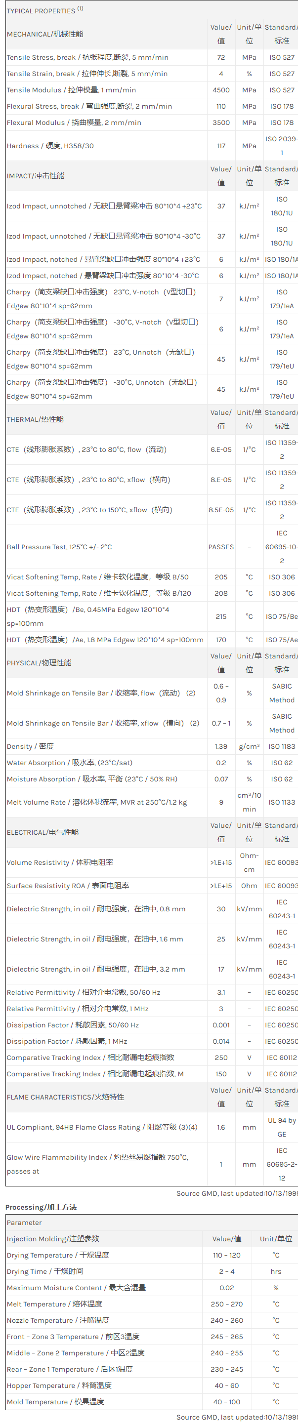 “Valox 4012G resin是一种聚丁烯对苯二甲酸酯(PBT)产品,含有的填充物为10%玻璃纤维增强材料,可以通过注射成型进行加工。