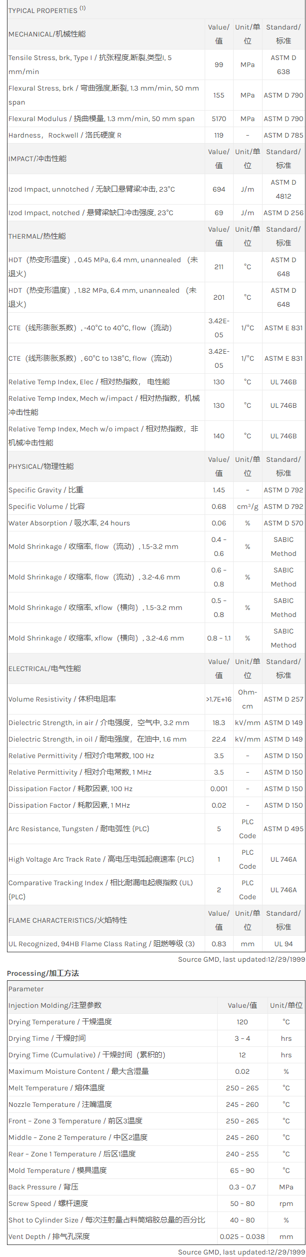 “Valox 412 resin是一种聚丁烯对苯二甲酸酯(PBT)材料,含有的填充物为20%玻璃纤维增强材料,加工方式为:注射成型。