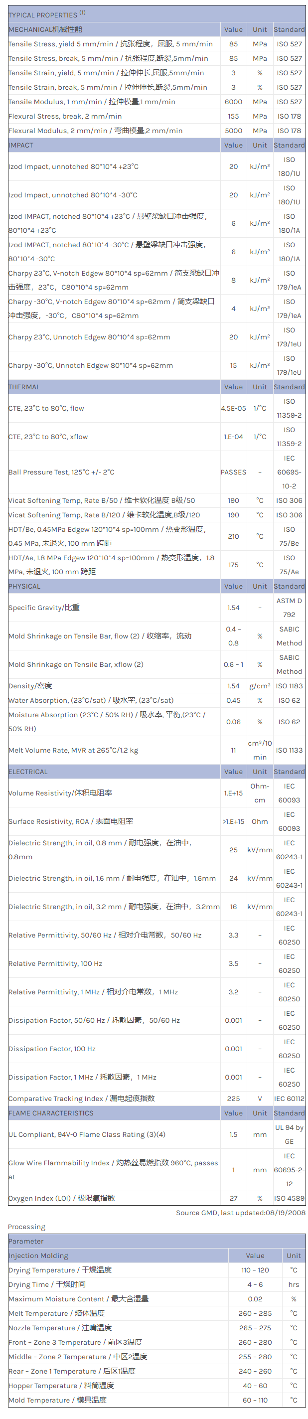 应用范围:产品描述Valox PBT V8531U物性表VALOX V8531U is 16% glass reinforced PBT+PET blend with improved surface appearance, UV stabilised