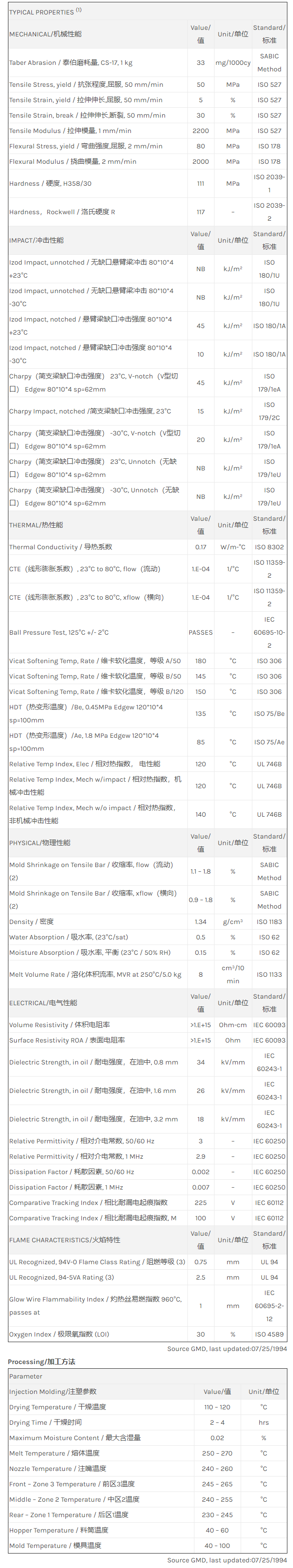 惠州Valox PBT 357XU物性表