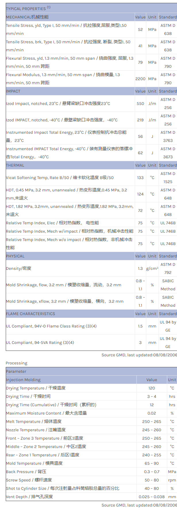 应用范围:产品描述Valox PBT V3802物性表PBT + PC + PET, Mold Release, Flame retardant, Impact Modified, Opaque
