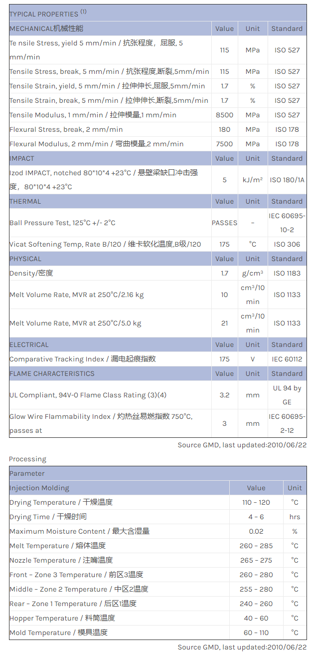 应用范围:产品描述Valox PBT VR960G30物性表VALOX VR960G30 is Industrial Quality Material based, 30% Filler Reinforced, Flame retardant PBT+PET+PC blend