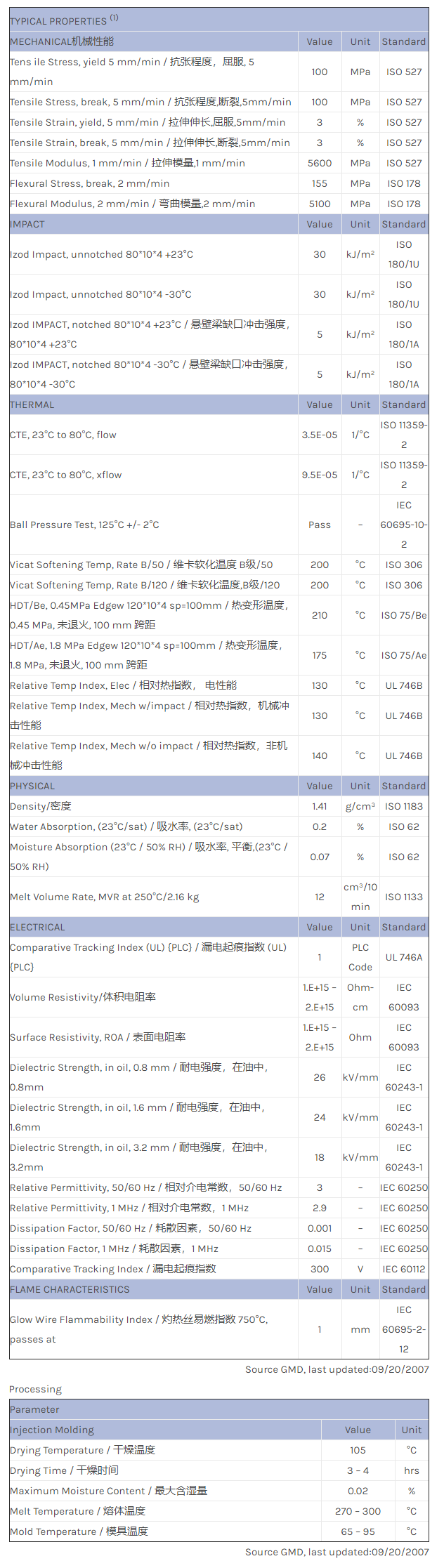 应用范围:产品描述Valox PBT V4030物性表Glass Filled Heat Stabilised PBT
