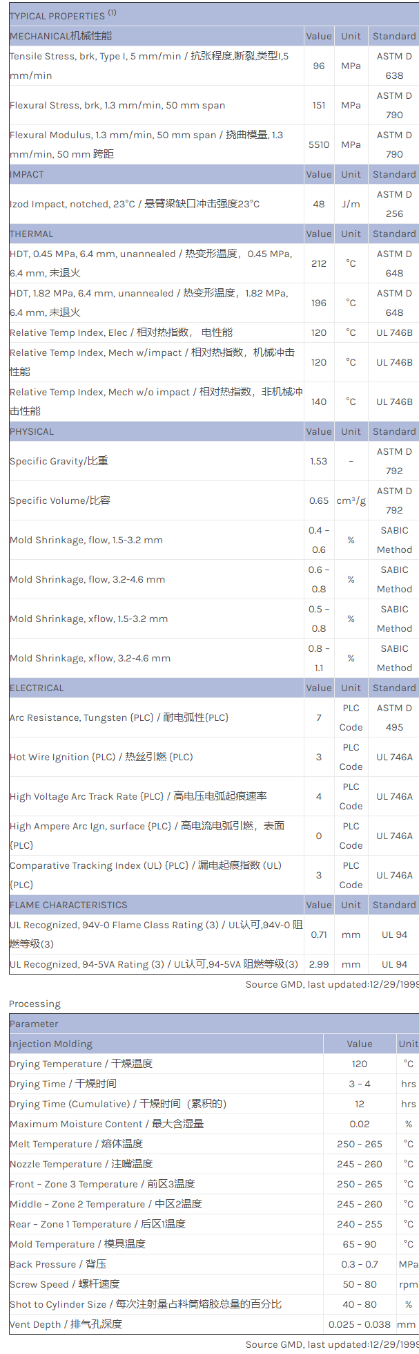 应用范围:产品描述Valox PBT 471物性表20% GR PBTP. UL94 V-0/5V rated. Non-blooming flame retardant.