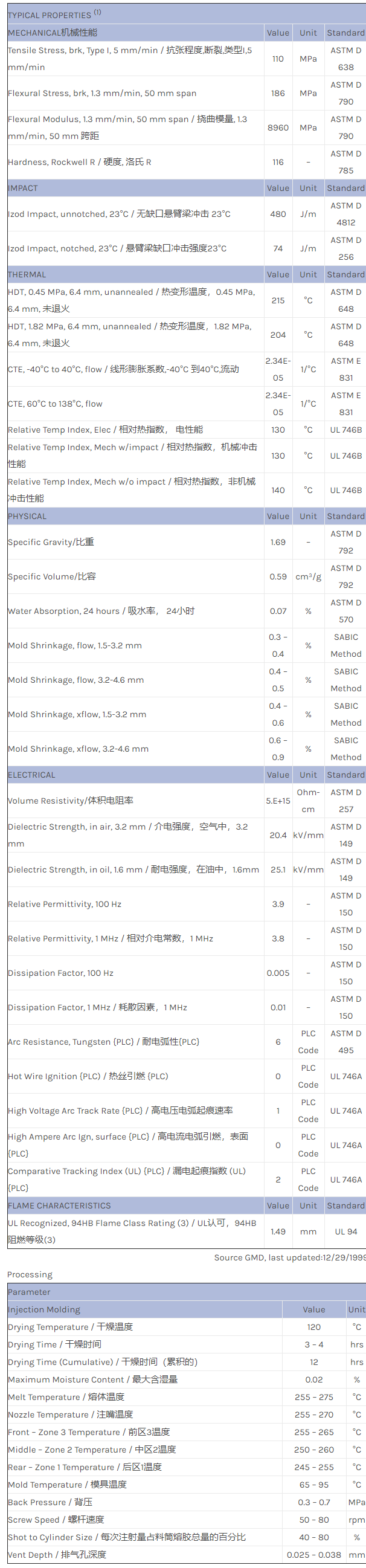 45% 玻纤/矿物增强PBTP。非阻燃。优异的性能,收缩小。机动加热装置等。在欧洲:限制使用,PM 批准。