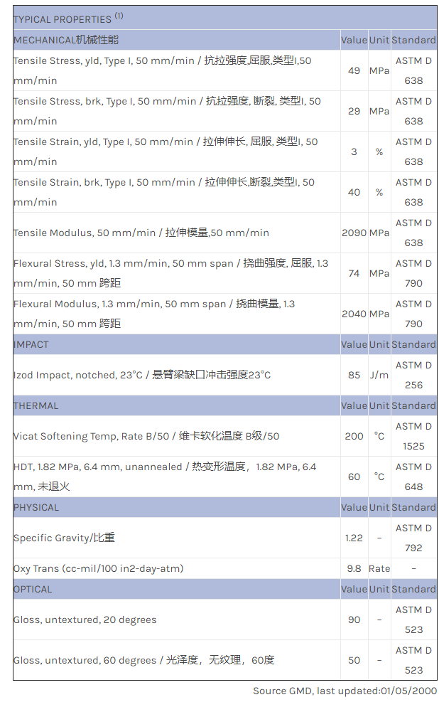 应用范围:产品描述Valox PBT PKG1530物性表Unreinforced polyester blend with improved flow and improved adhesion to Polystyrene. Complies with FDA regulations for food contact applications.