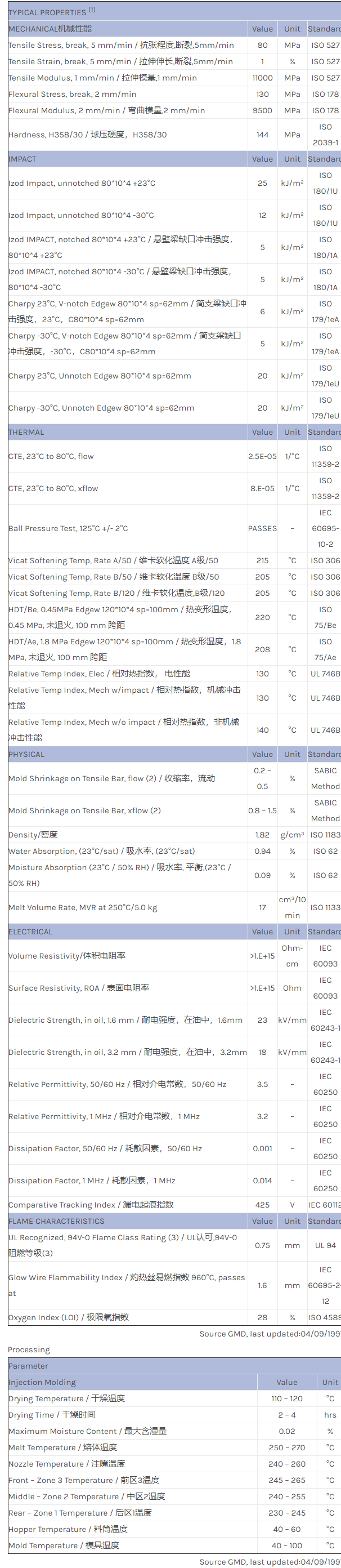 VALOX 7523 is a 45% glass/mineral filled, flame retarded PBT injection moulding resin with excellent electrical properties.