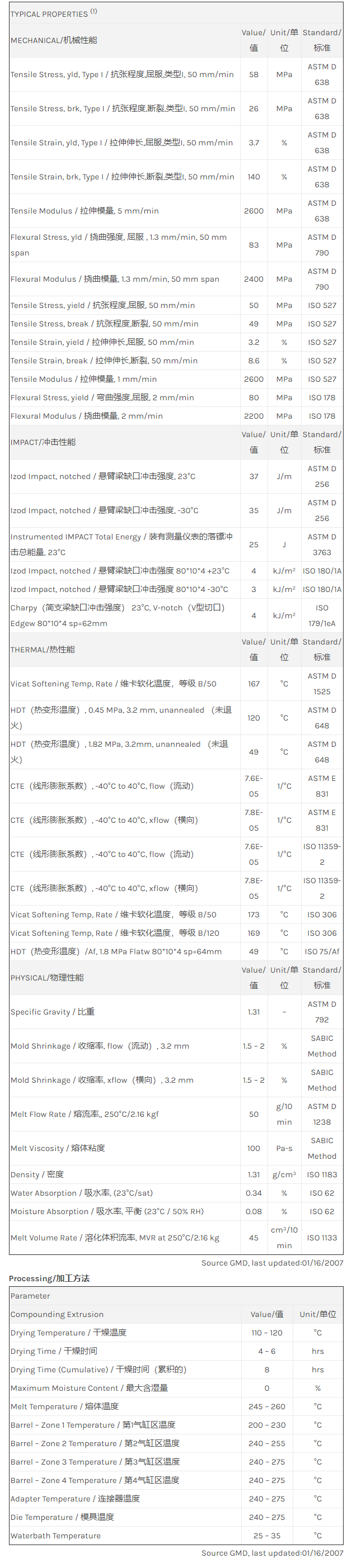应用范围: 产品描述 Valox PBT HX3061HP物性表 Valox HX3061HP resin是一种聚丁烯对苯二甲酸酯(PBT)产品,可以通过化合物挤出进行加工。 Valox HX3061HP resin的应用领域包括纺织/纤维和添加剂/色母粒。 主要特性为:生物相容。 PBT for compounding/fibers only. Not intended for injection