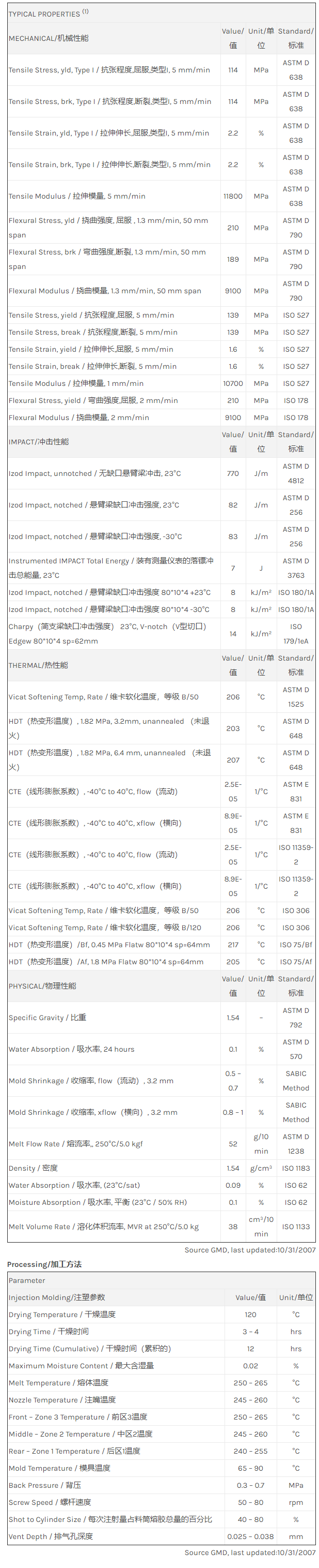“Valox IQ420 resin是一种聚丁烯对苯二甲酸酯(PBT)材料,含有的填充物为30%玻璃纤维增强材料,加工方式为:注射成型。