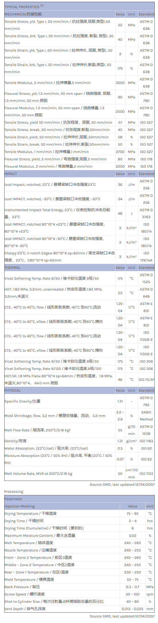 Valox PBT EXVX1276物性表