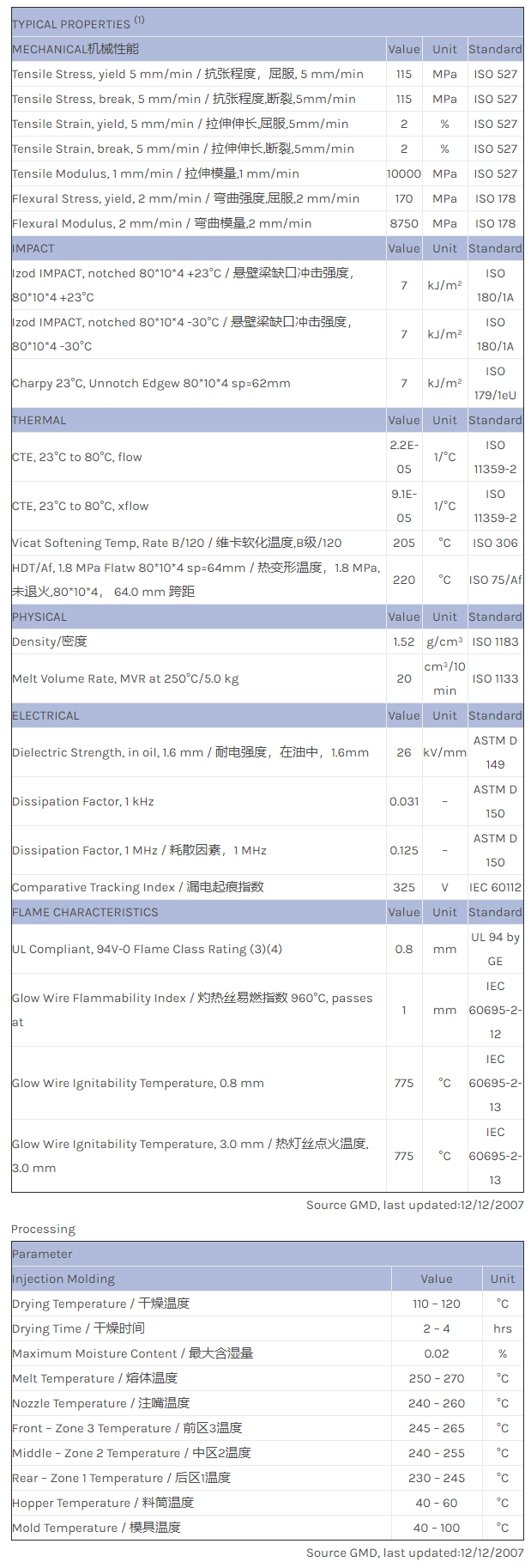 应用范围:产品描述Valox PBT EXVX1301物性表Non Brominated & Non Chlorinated Flame retardant 25% Glass Filled PBT