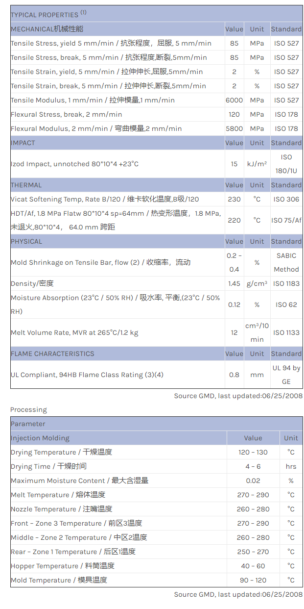 应用范围:产品描述Valox PBT EXVX1300物性表VALOX EXVX1300 is a 15% glass reinforced injection molding PET grade for food packging applications